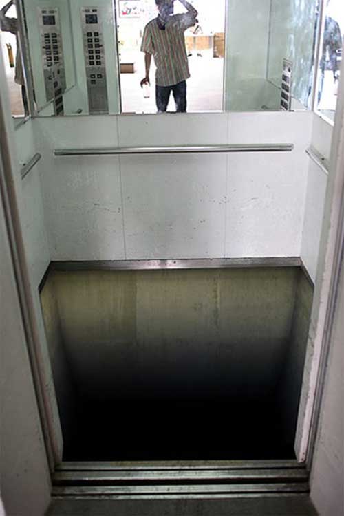 実際、エレベータのドアが空いてこんなんだったら、「ああここはシンドラーのエレベータなんだ、もう来ねえ」と思うでしょうね。